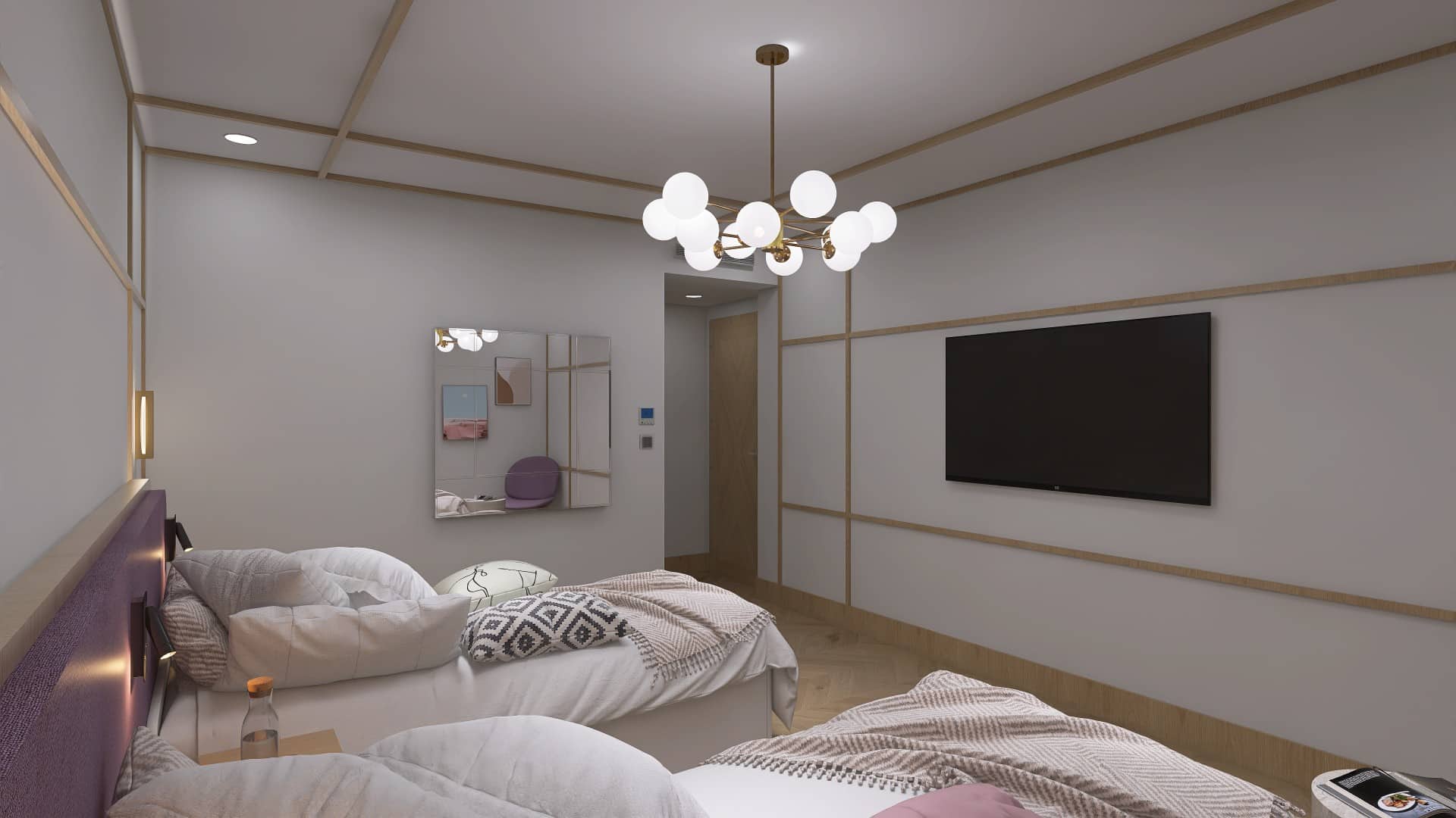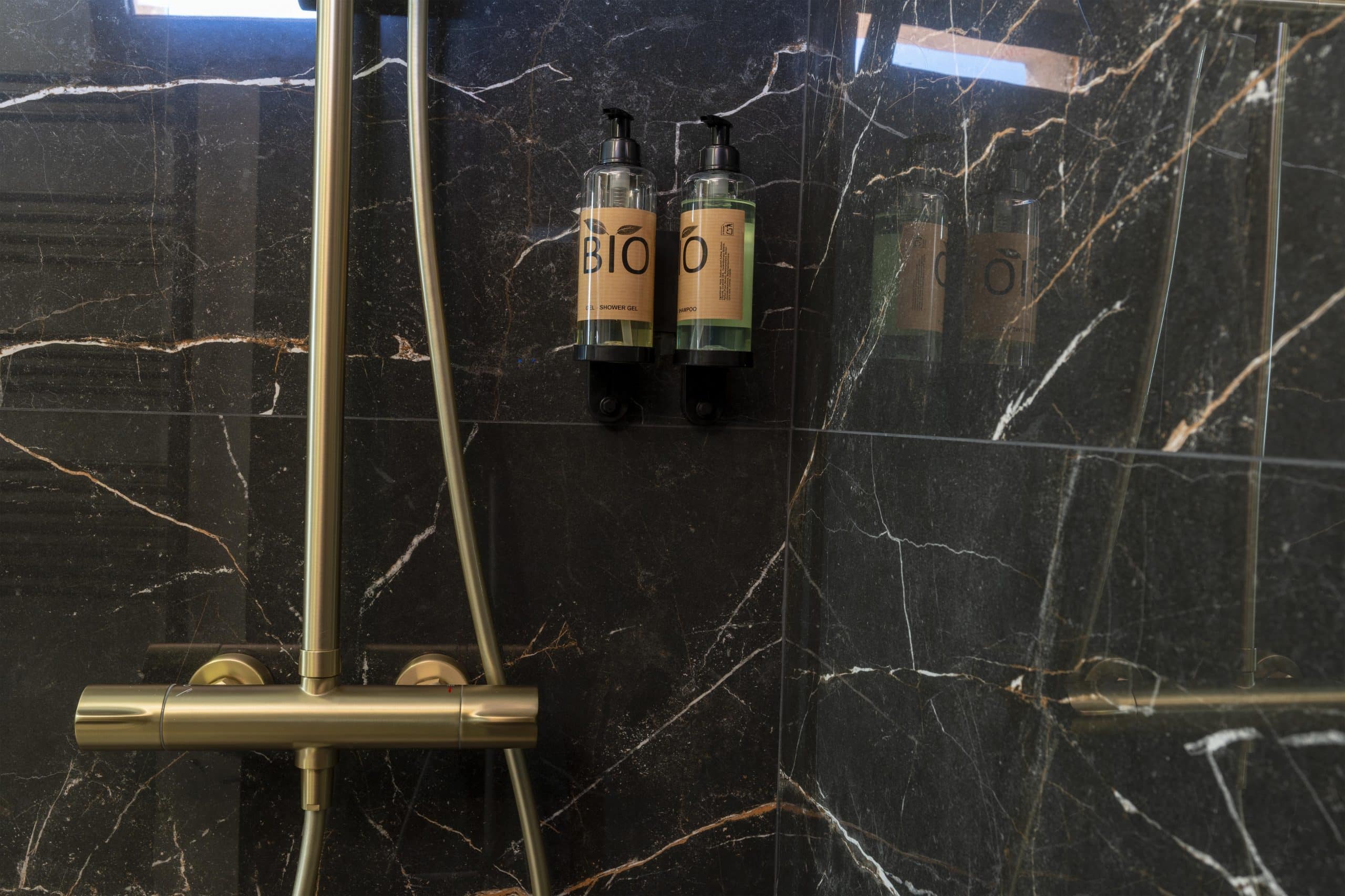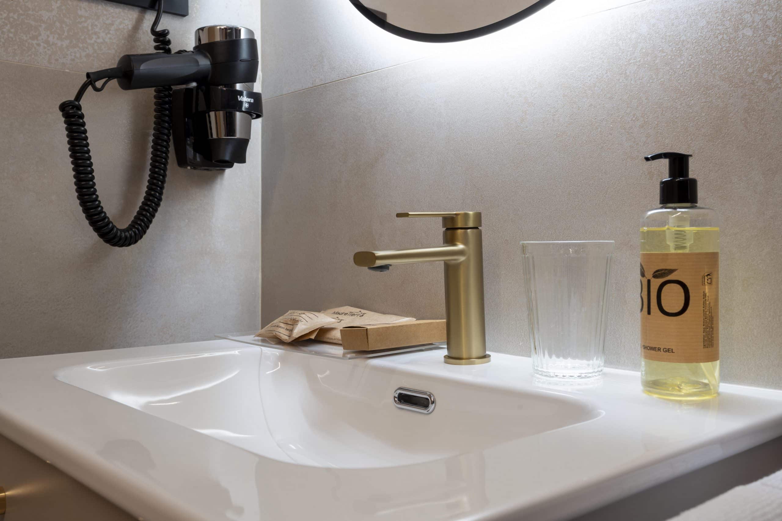 Una paleta ligera de tonos tierra y otoñales crean un santuario que es a la vez cálido, sereno y acogedor. Los ventanales transparentes desvelan una luz natural potenciada gracias al estar la habitación ubicada en un quinto piso. Un práctico baño revestido de materiales que evocan mármol, con ducha separada y elementos minimalistas invitan a dedicarse un tiempo con el objetivo de prepararse para seguir disfrutando en compañía del centro de la ciudad de Madrid.