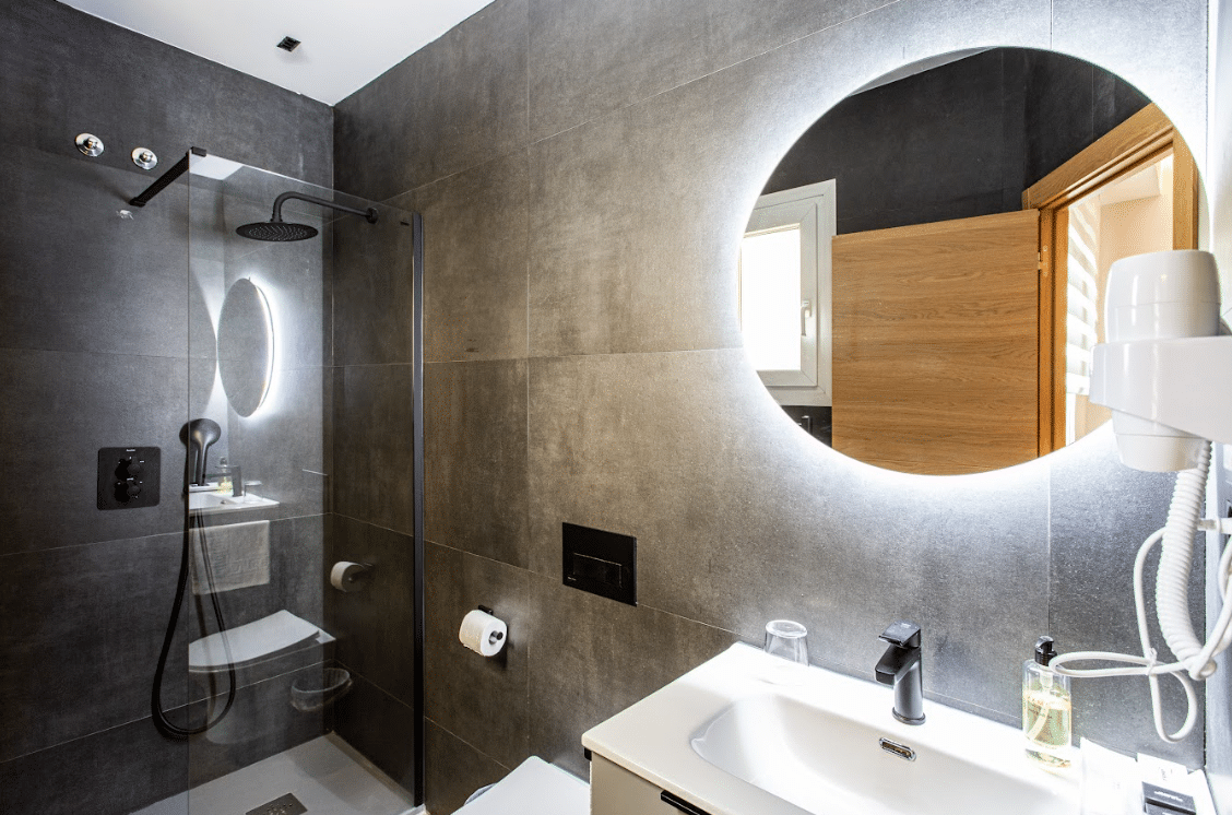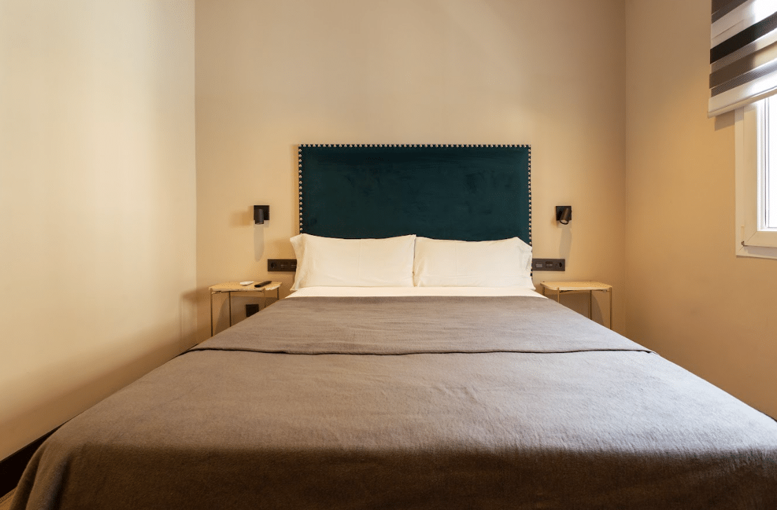 Una paleta ligera de tonos tierra y otoñales crean un santuario que es a la vez cálido, sereno y acogedor. Los ventanales transparentes desvelan una luz impresionante, incluso siendo una habitación interior. Un práctico baño revestido de materiales que evocan mármol, con ducha separada y elementos minimalistas invitan a dedicarse un tiempo a uno mismo con el objetivo de prepararse para seguir disfrutando del centro de la ciudad de Madrid.